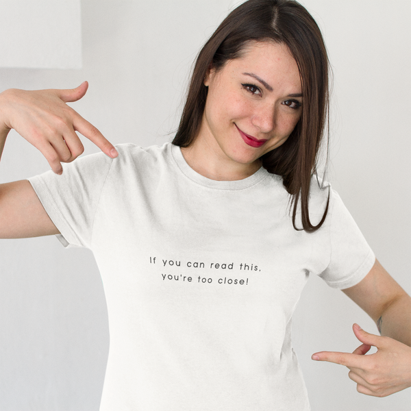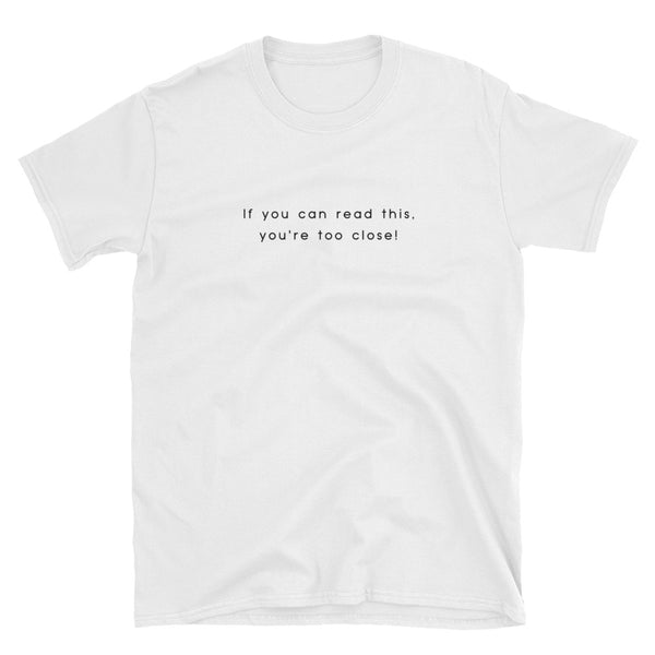 "You're Too Close" Short-Sleeve Unisex T-Shirt (White)